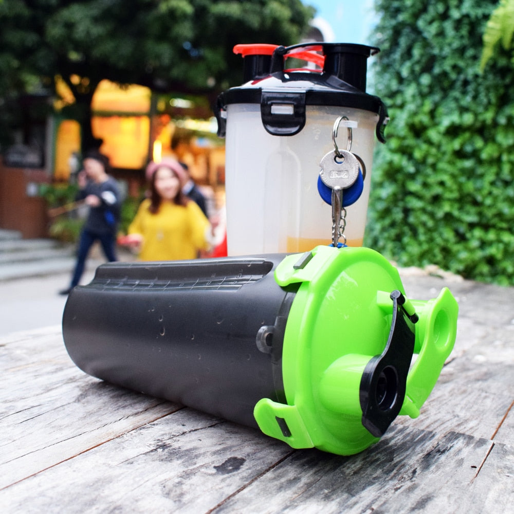 Her få man med seg alt man vil. Både av mat som nøtter, proteinpulver eller gryn og i tillegg væsker som melk, vann eller juice.