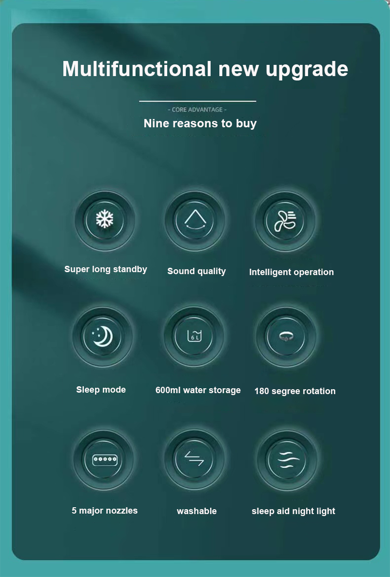 Opplev ultimate komfort med vår 3-i-1 luftfukter, kjøleventilator og LED-nattlys
