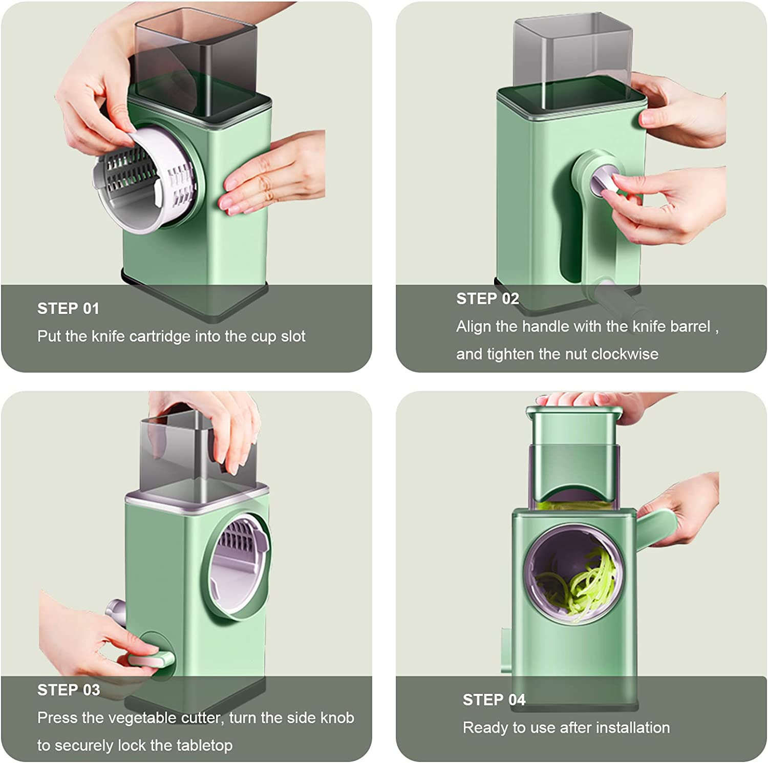 Solid roterende rivjern med større åpning som gir et større bruksområde. Dette gjør matlaging til en lek. Med sine banebrytende 360° rustfrie stålblader, som gjør både kutting, rasping og oppdeling i skiver eller strimler lettere enn noen gang.