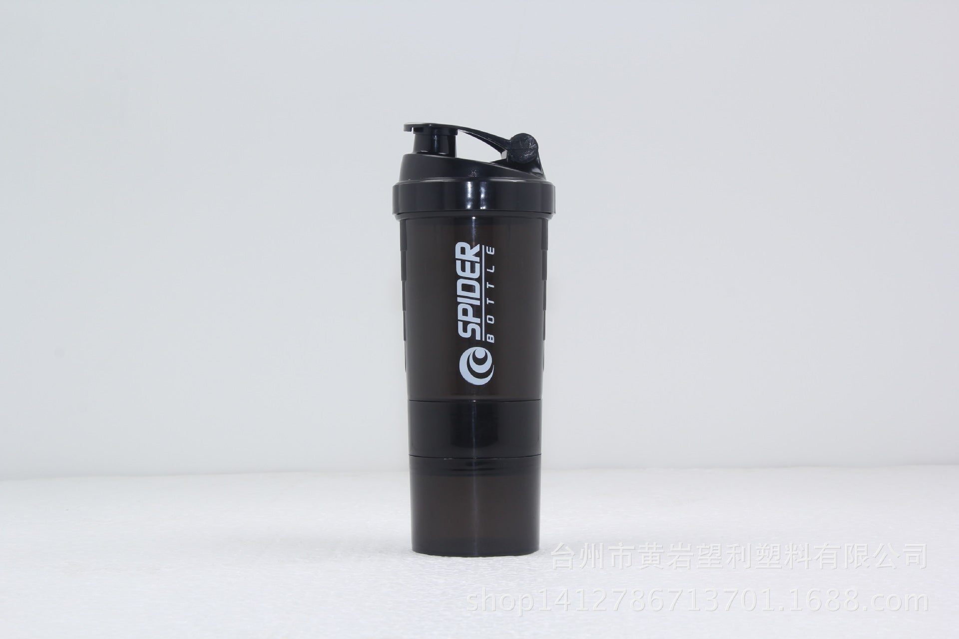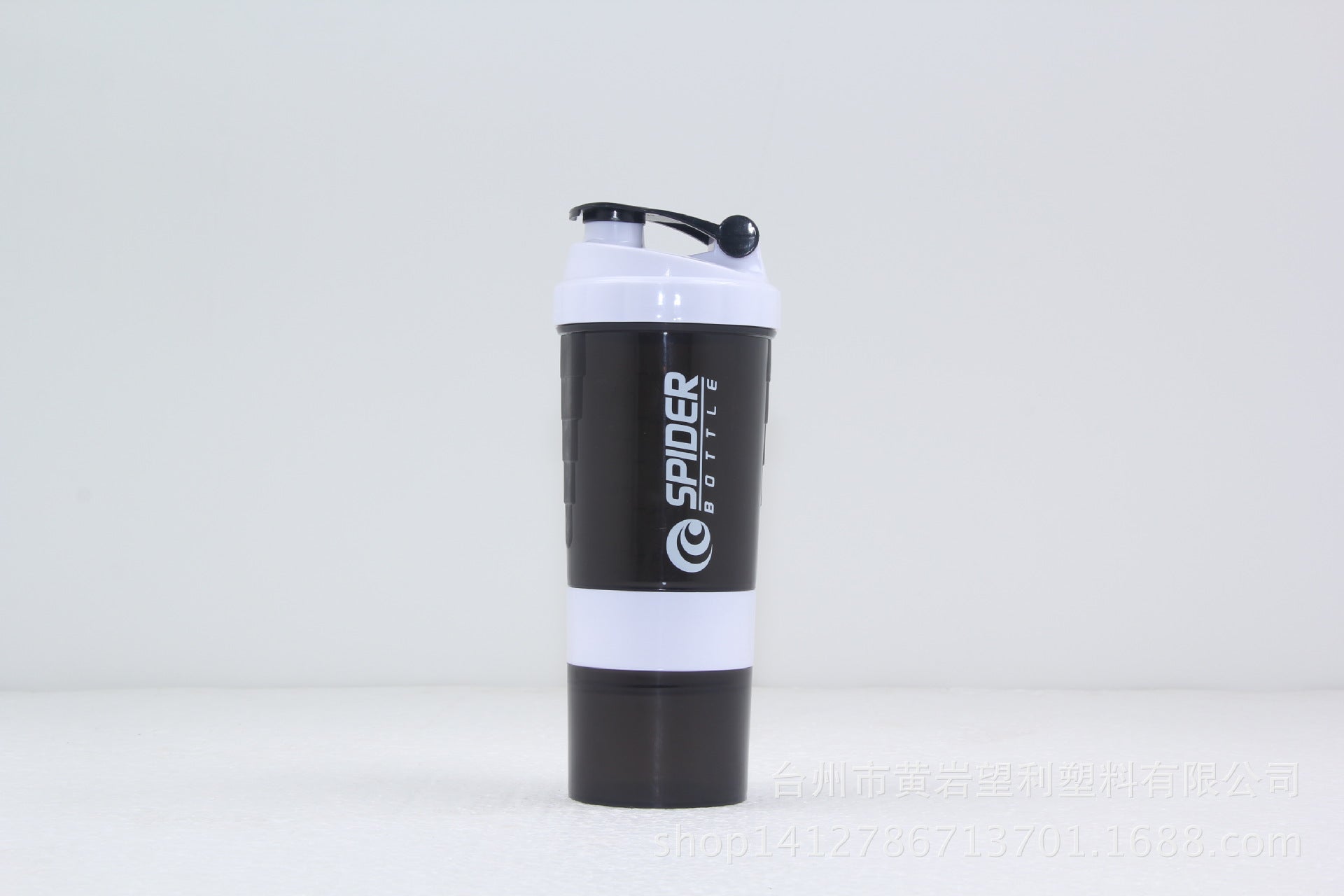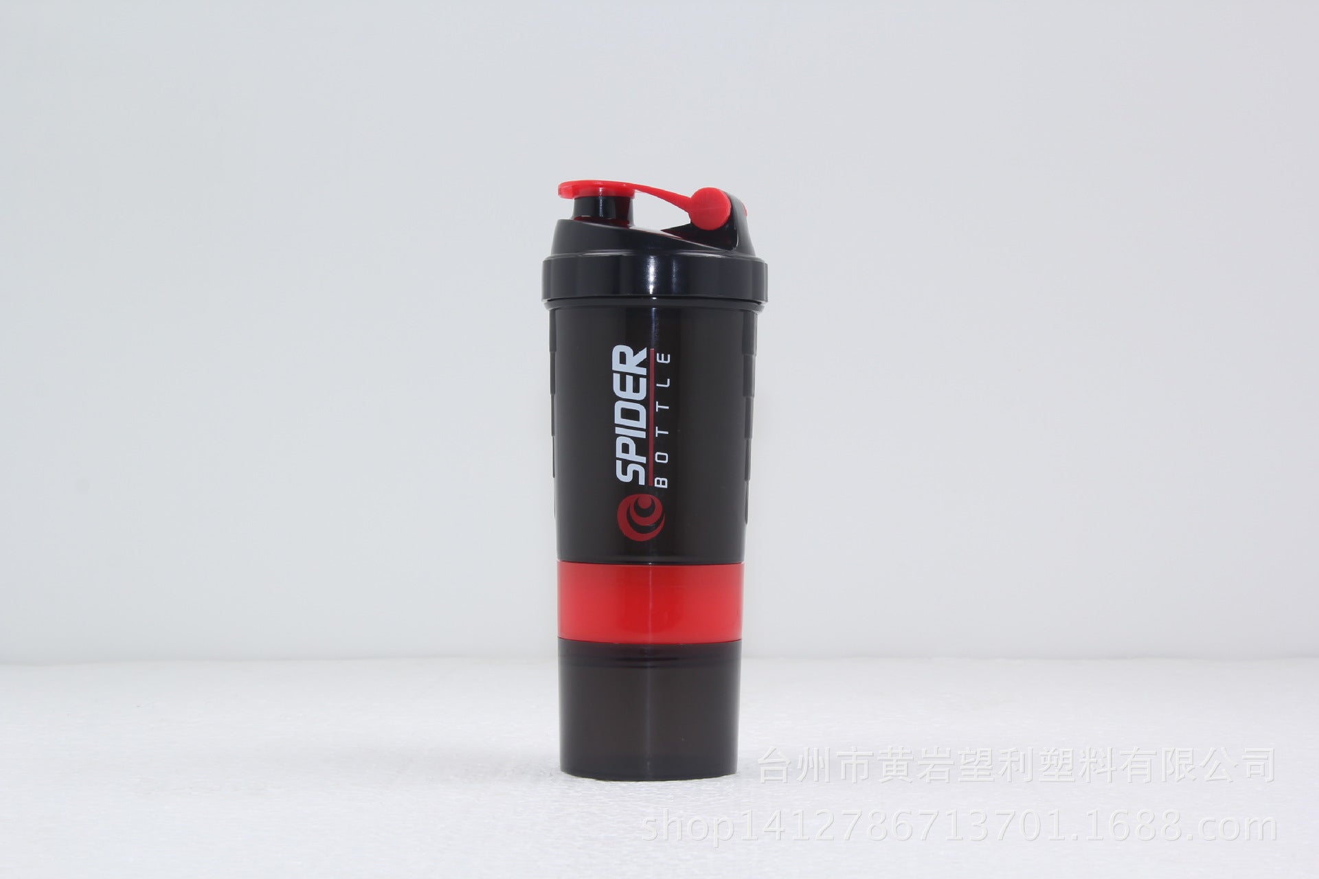 Spider bottle består av tre deler – selve shakeren, en beholder for pulver, og en mindre beholder for eksempel piller.